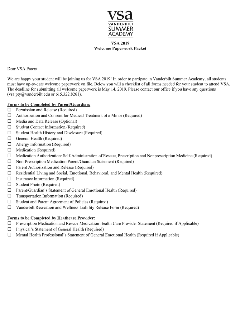 VIA 2019 Welcome Paperwork Racketeer VIA Parent, We are happy your student will be joining us for VIA 2019! In order to participate in Vanderbilt Summer Academy, all students must have update welcome