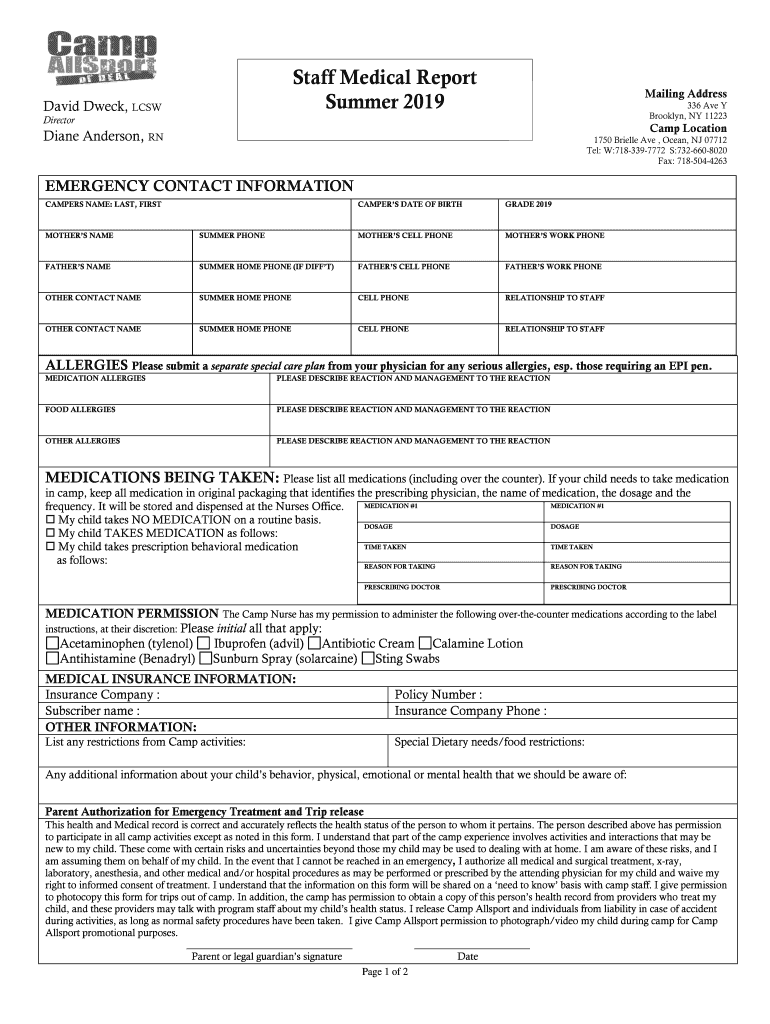Brooklyn, NY 11223DirectorCamp Location Diane Anderson, RN1750 Braille Ave, Ocean, NJ 07712