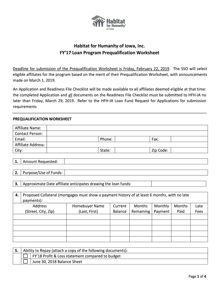 Individuals or families seeking affordable housing options through Habitat for Humanity are required to file a pre-qualification form.