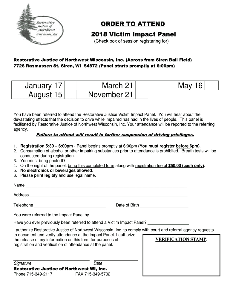 (Check box of session registering for)Restorative Justice of Northwest Wisconsin, Inc. (Across from Siren Ball Field)