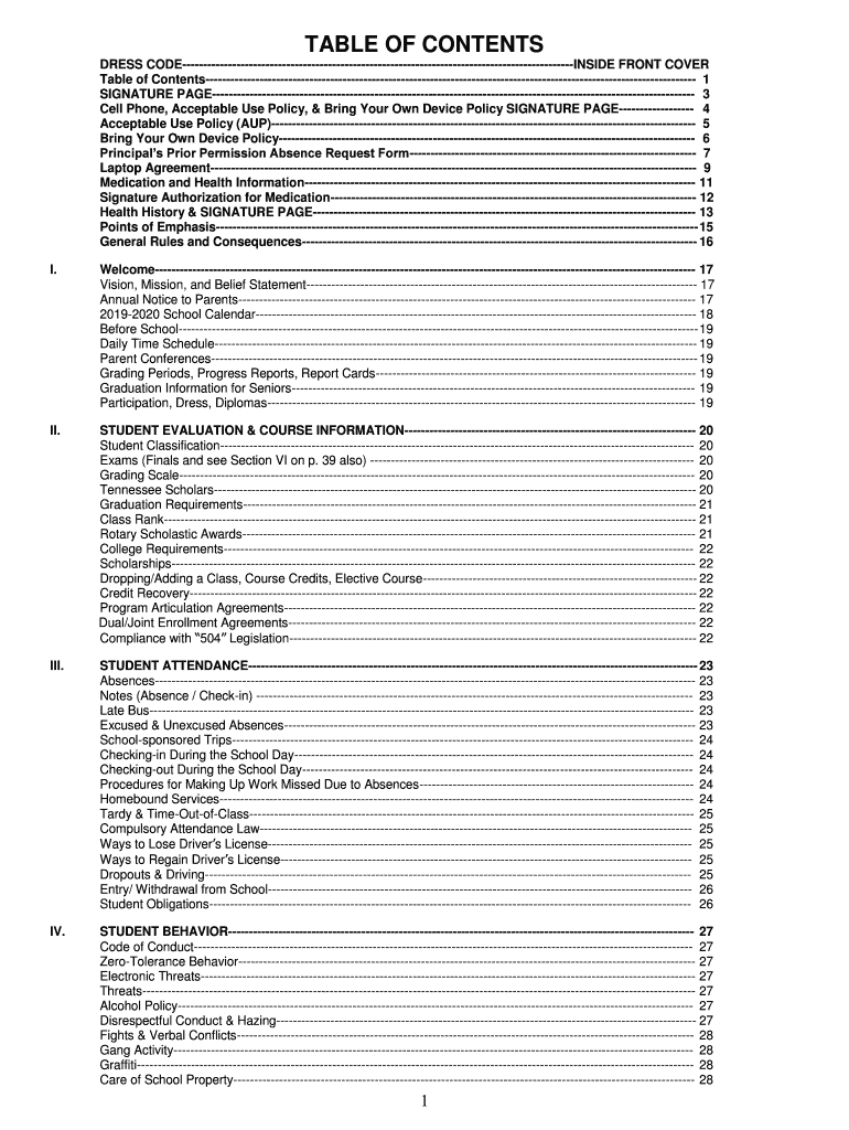 TABLE OF CONTENTS DRESS COINCIDE FRONT COVER Table of Contents 1 SIGNATURE PAGE 3 Cell Phone, Acceptable Use Policy, & Bring Your Own Device Policy SIGNATURE PAGE