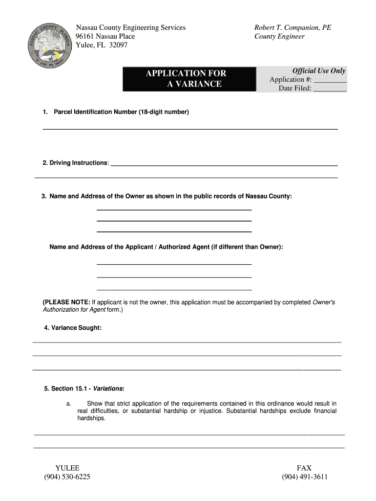 Download the form from the Nassau County website or visit the local engineering services office to obtain a physical copy.