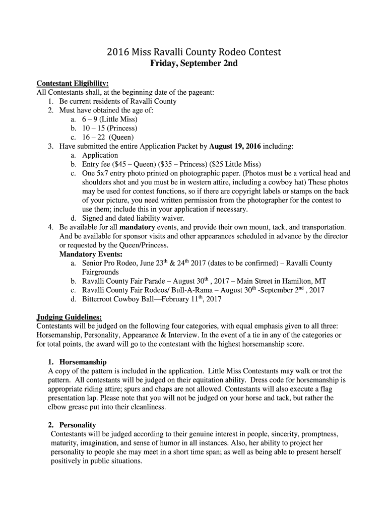 How to fill out rodeo queens miss ravalli?