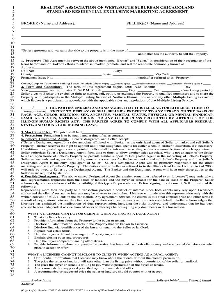 Who Needs the Standard Residential Exclusive Marketing Agreement?