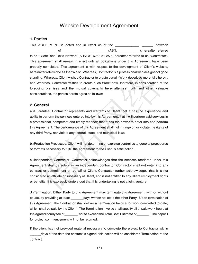 The Website Development Agreement is a service agreement used by clients and contractors to formalize the development of a website.