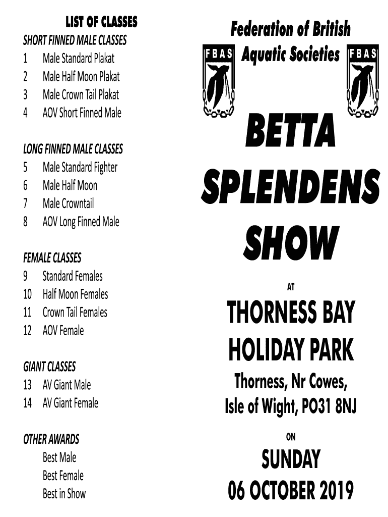 Get the free Betta Show Schedule - Federation of British Aquatic Societies
