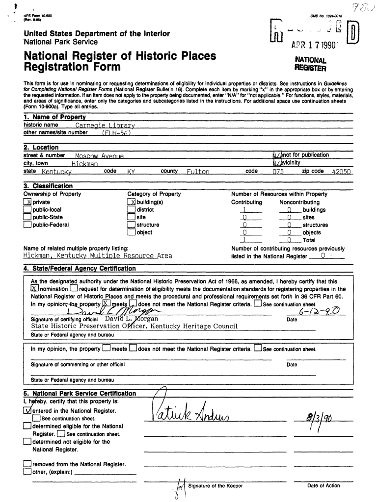 UPS Form 10900 (Rev. 846)OMB No. 10240018United States Department of the Interior National Park Service APR 17 1990 'National Register of Historic Places Registration Formation Registers form is for
