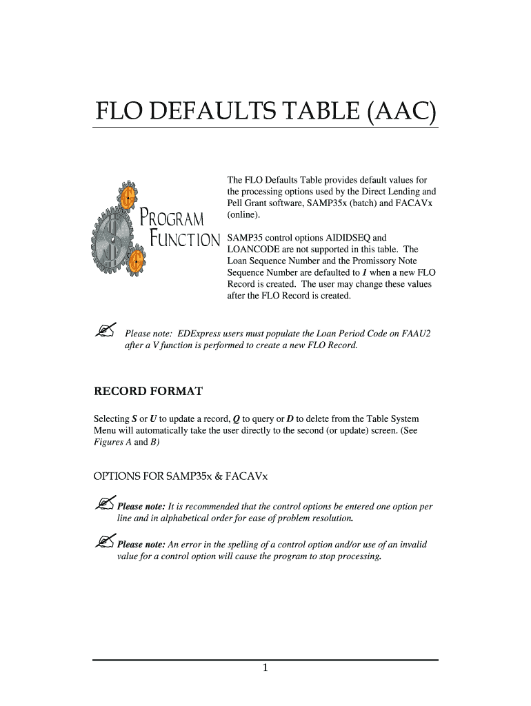 FLO DEFAULTS TABLE (AAC)