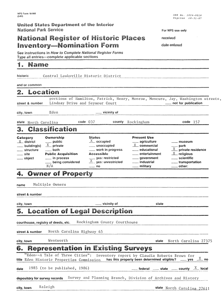 NPS Form 10900OMB No. 10240018 Expires 103187(382)received instructions in How to NRU 'loft National He C11Ster Forms all P.nuclear:ROIP.the a, spirit:Die sections 1historicCentral Lewisville Historic
