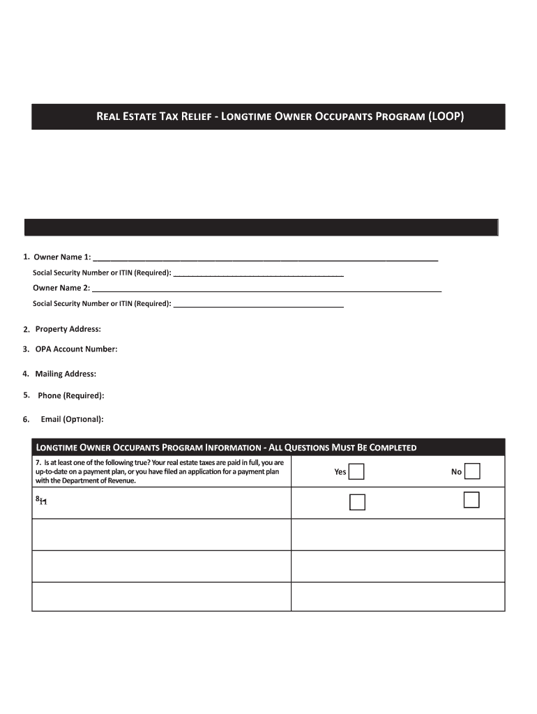 Real Estate Tax Relief Longtime Owner Occupants Program (LOOP) Deadline By signing this application I am asserting that I am the owner of the property listed below. Any person who knowingly files