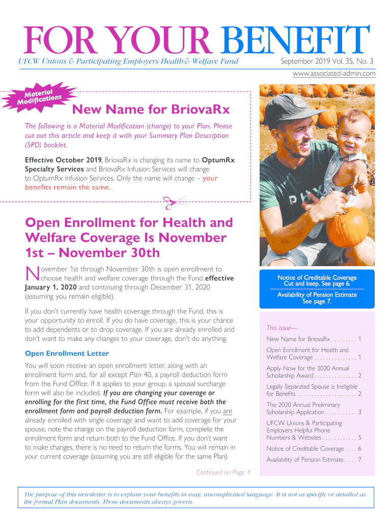 FOR YOUR BENEFITUFCW Unions & Participating Employers Health & Welfare Fund September 2019 Vol. 35, No. 3 www.associatedadmin.coml Material NS Io t a c Modified Name for BriovaRxThe following is a