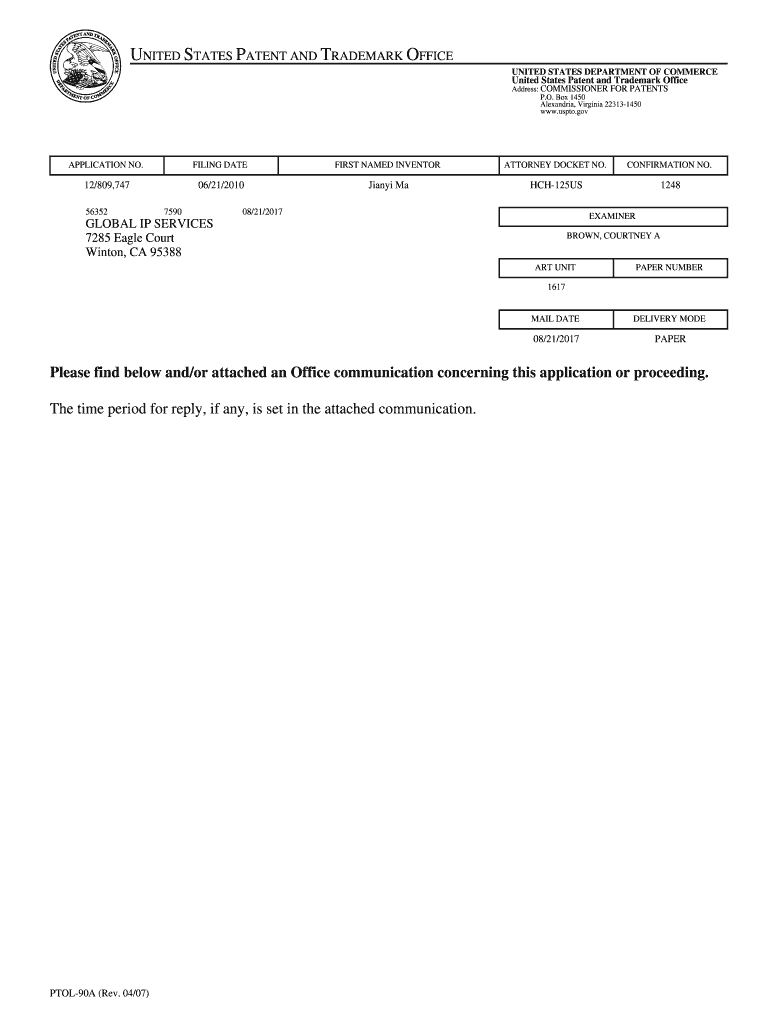 UNITED STATES DEPARTMENT OF COMMERCEUnited States Patent and Trademark Office
