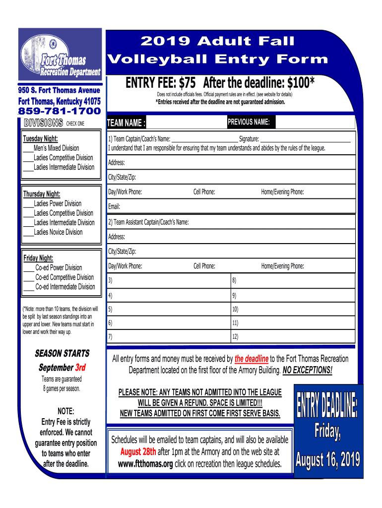 ENTRY FEE: $75 After the deadline: $100* Does not include officials fees. Official payment rules are in effect. (see website for details)*Entries received after the deadline are not guaranteed admission.