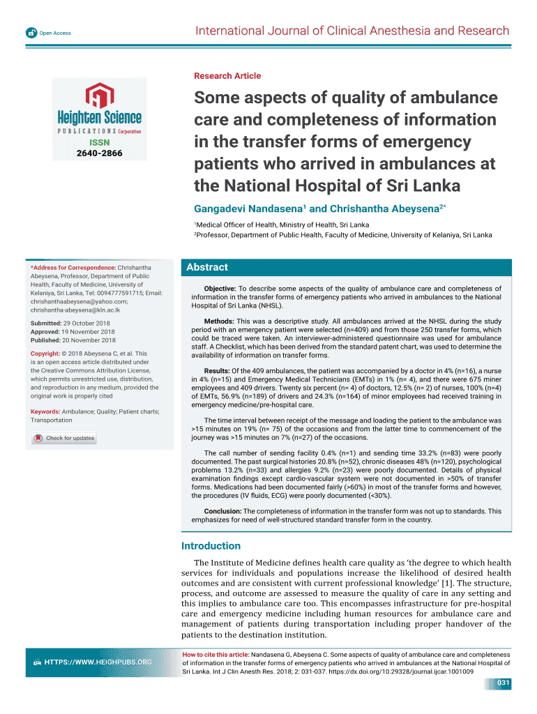 Get the free Some aspects of quality of ambulance care and completeness of information in the tra...