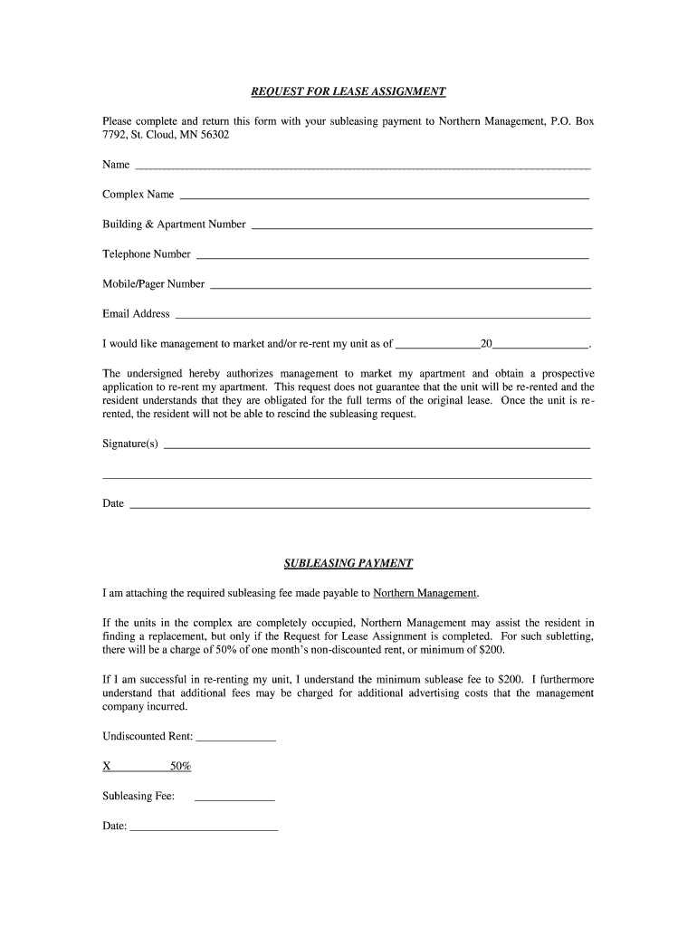 Get the free Request for Lease Assignment