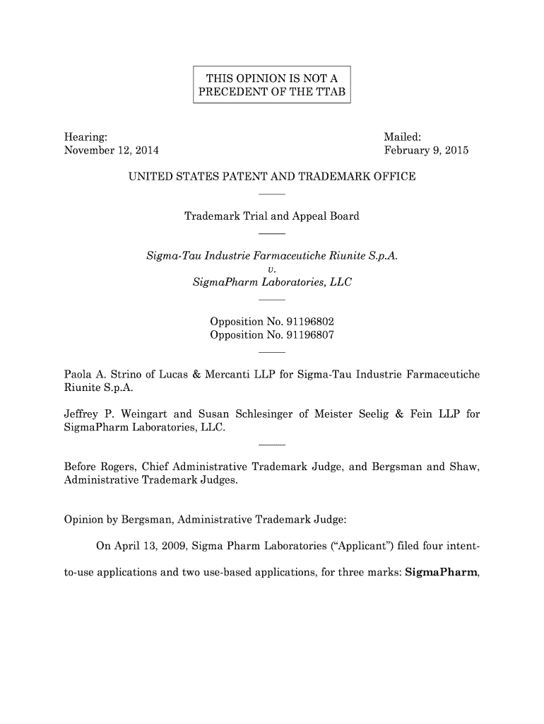 THIS OPINION IS NOT A PRECEDENT OF THE Cashiering: November 12, 2014Mailed: February 9, 2015UNITED STATES PATENT AND TRADEMARK OFFICE Trademark Trial and Appeal Board Stigmata Industries Farmaceutiche