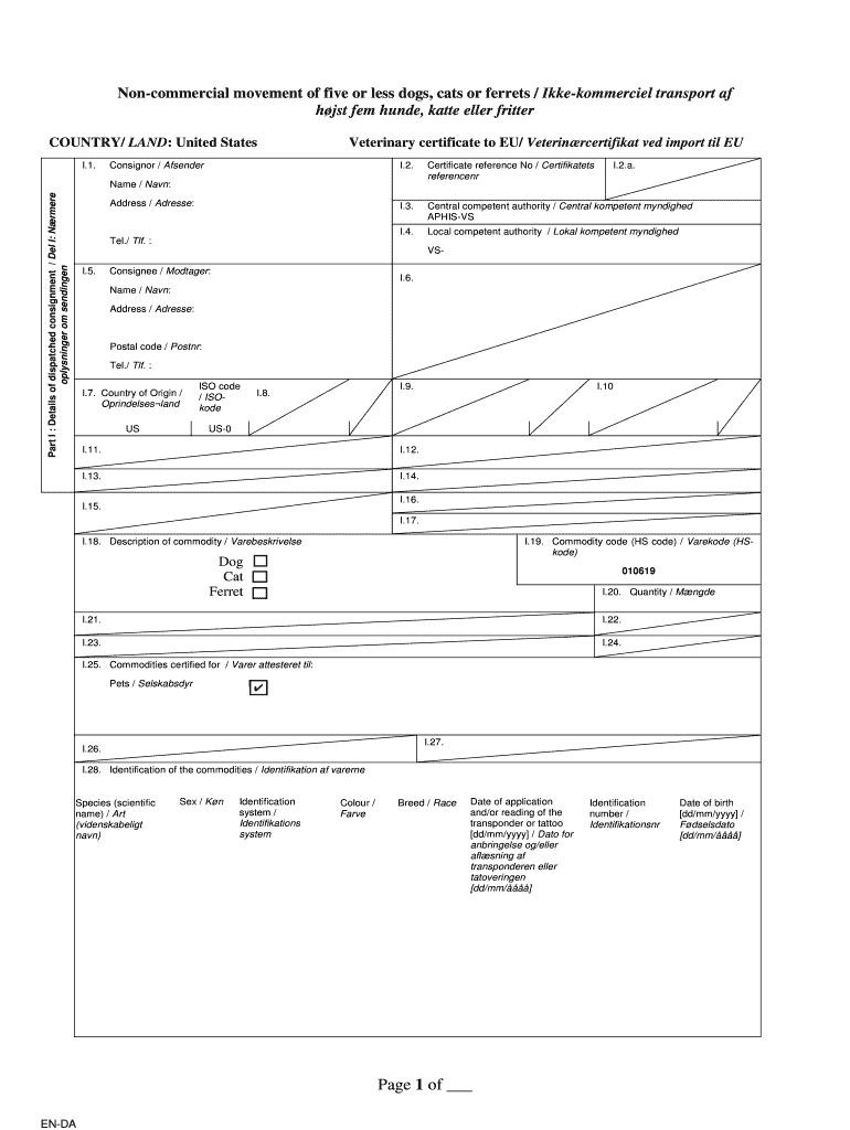 I.1. Veterinary certificate to EU/ Veterinrcertifikat
