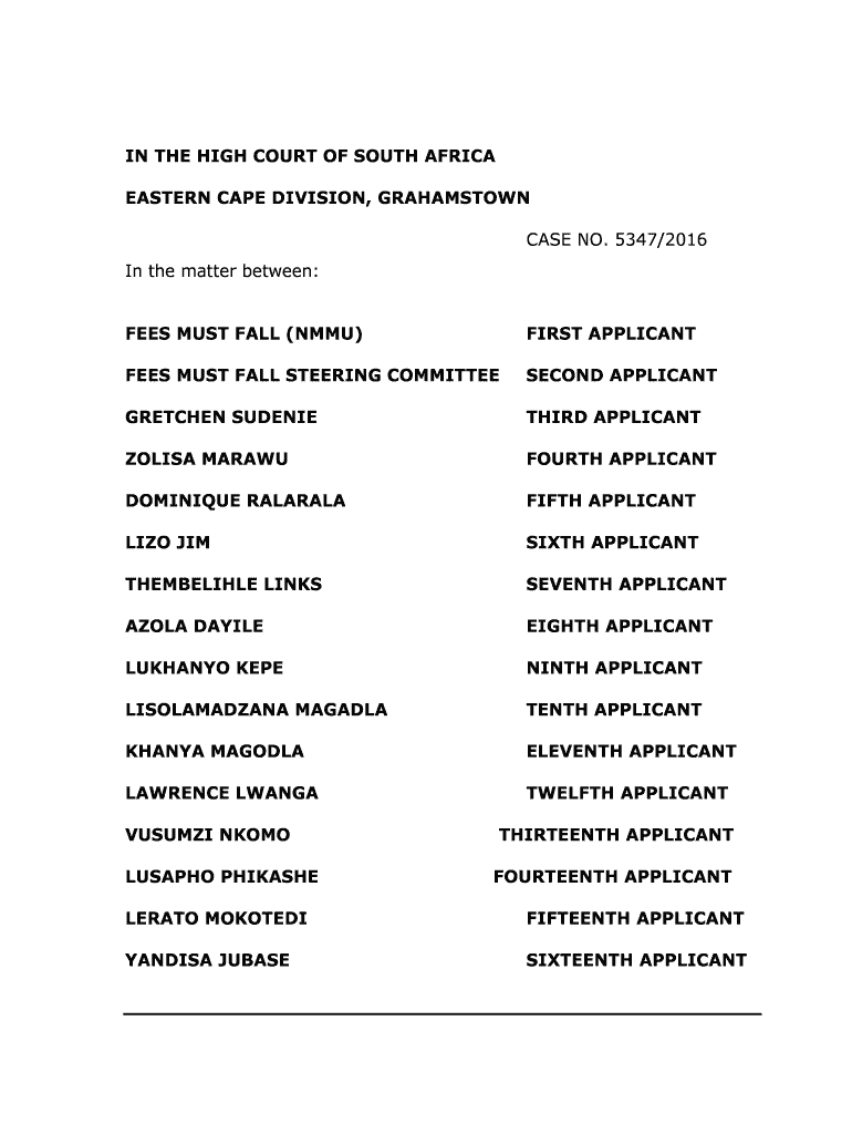 FEES MUST FALL (MMU)FIRST APPLICANTS MUST FALL STEERING COMMITTEESECOND APPLICANTGRETCHEN