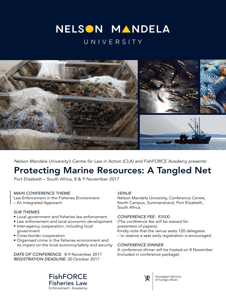 Nelson Mandela Universities Center for Law in Action (CLA) and Fishburne Academy presents:Protecting Marine Resources: A Tangled Net Port Elizabeth South Africa, 8 & 9 November 2017MAIN CONFERENCE