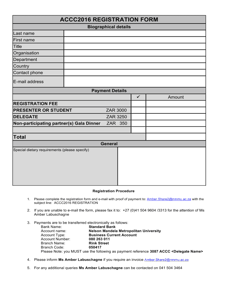 Get the free ACCC2016 REGISTRATION FORM - Nelson Mandela University