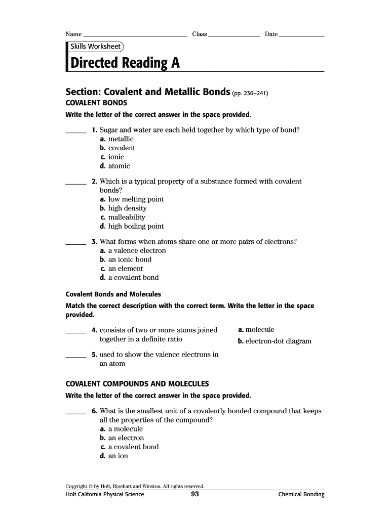 The Covalent and Metallic Bonds Worksheet is a valuable educational resource used primarily in California classrooms. Its purpose is to help students understand the fundamental concepts of covalent and metallic bonding in chemistry. The worksheet includes various question types, such as multiple-choice and matching, allowing for diverse assessment methods. This approach not only reinforces learning but also facilitates student engagement.