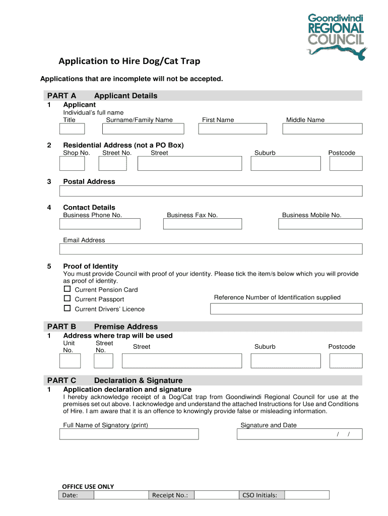 Get the free Application to Hire Dog/Cat Trap - Goondiwindi Regional ...