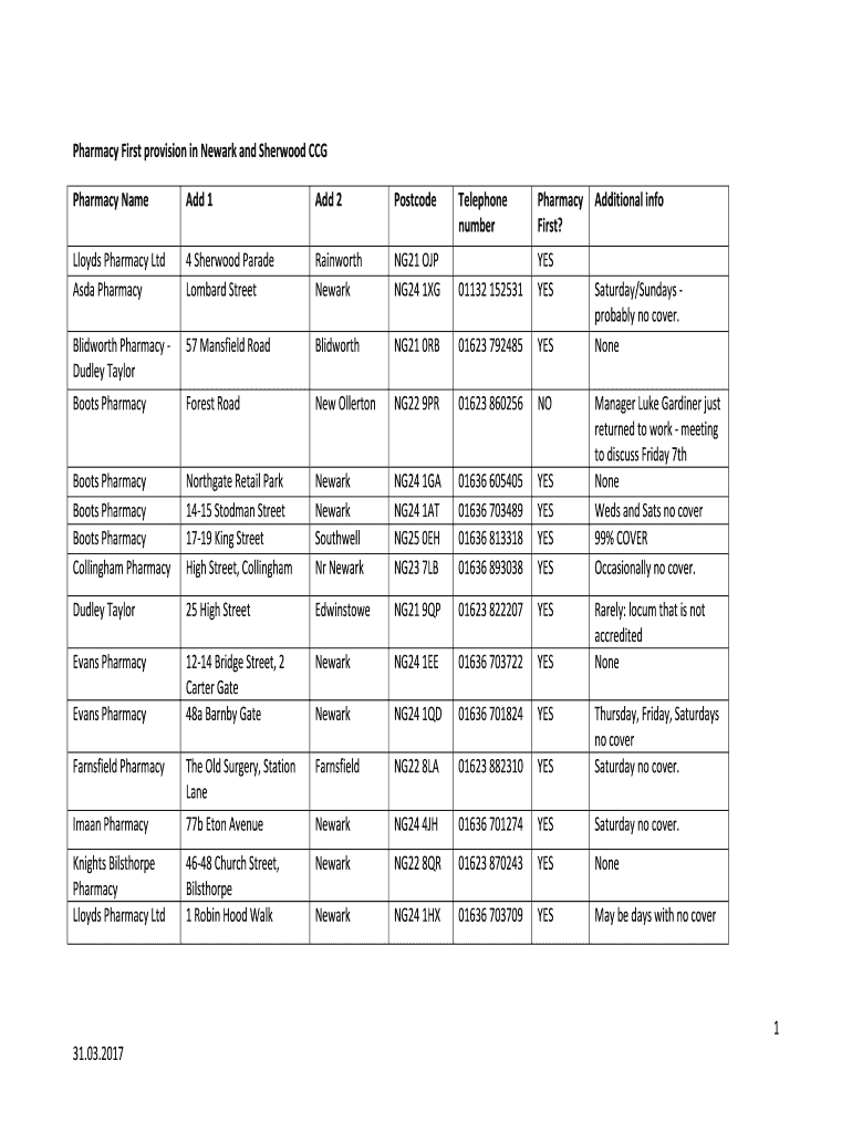 Get the free 1 31.03.2017 Pharmacy First provision in Newark and ... - midnottspathways nhs