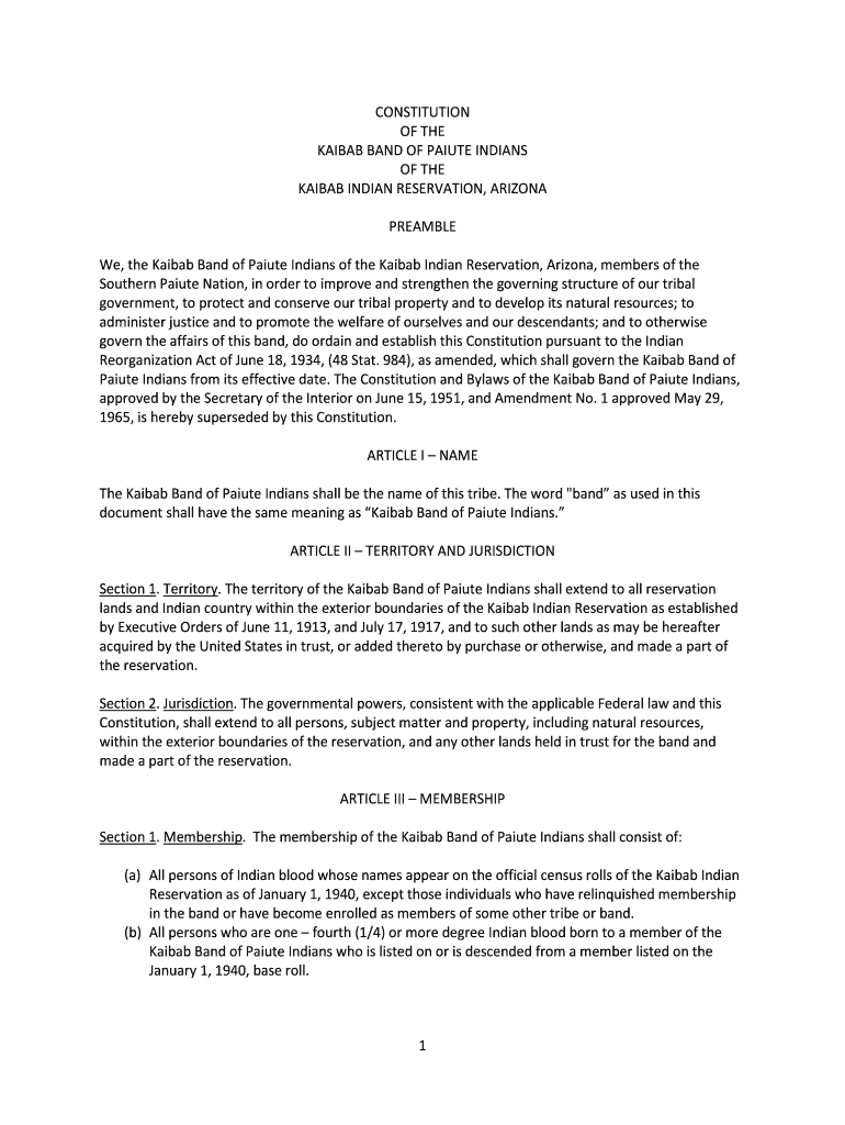 We, the Kebab Band of Paiute Indians of the Kebab Indian Reservation, Arizona, members of the