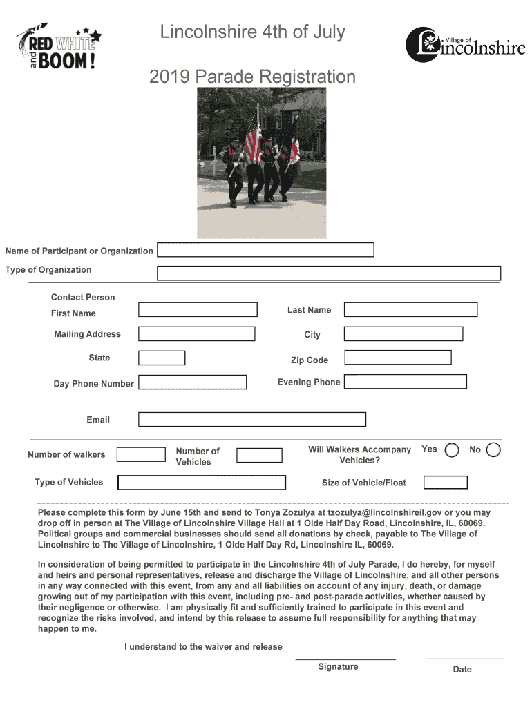 Lincolnshire 4th of July can be filled out online through the official website of the village or in person at the village hall.