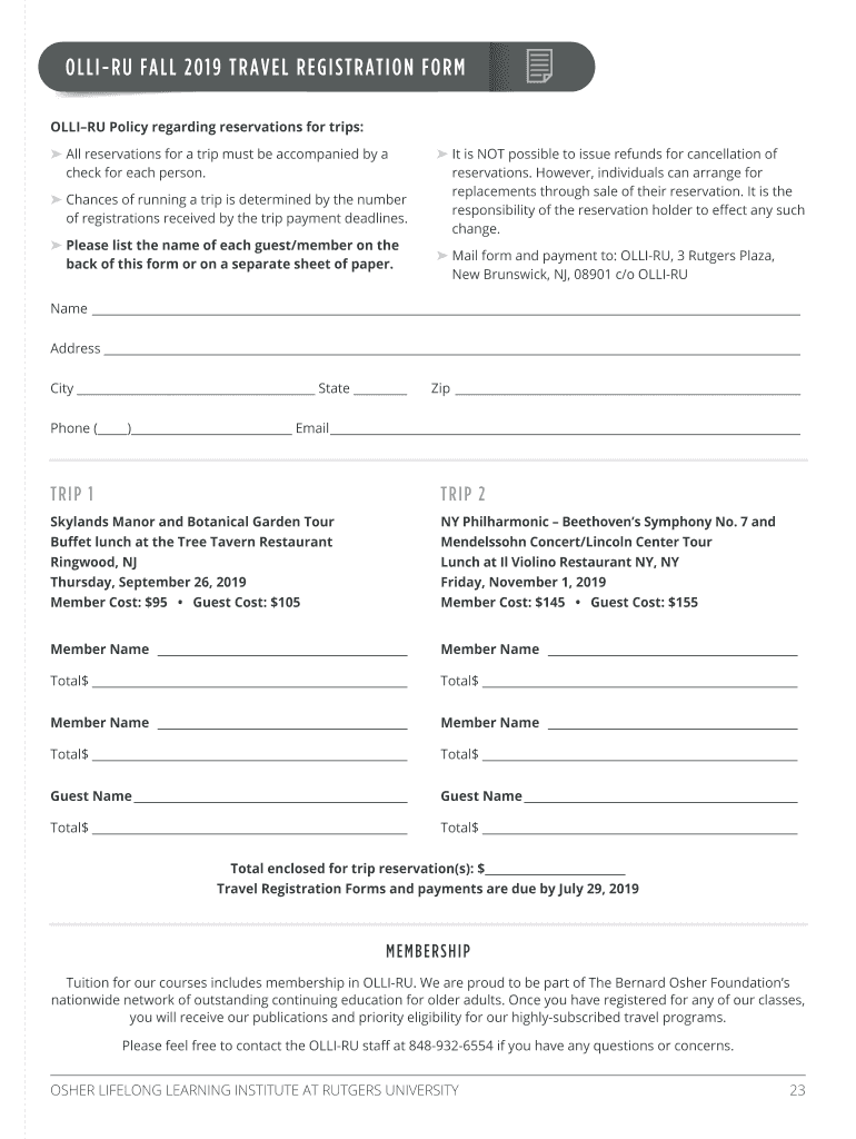 ALL I RU FA L 2 019 TRADE L R EG I STRATA ION FORM OLLIE Policy regarding reservations for trips: All reservations for a trip must be accompanied by a check for each person. Chances of running a trip