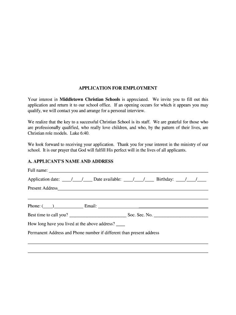 Get the free INITIAL TEACHER APPLICATION - Middletown Christian School - bwilliams mcseagles