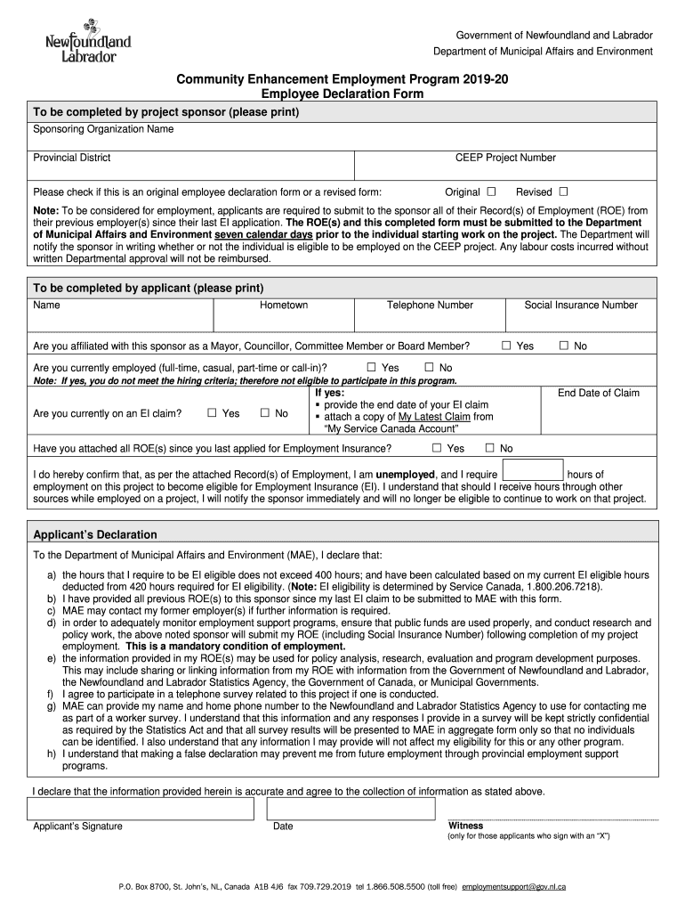 Get the free CEEP Employee Declaration Form 2019-20 - Department of ...