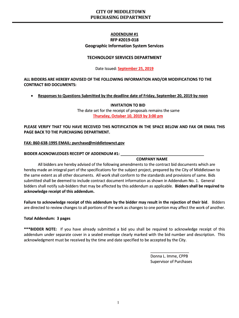 PURCHASING DEPARTMENTADDENDUM #1RFP #2019018