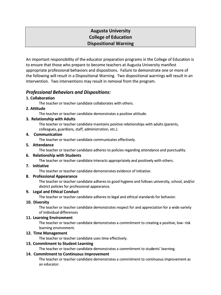 Dispositional warning must include details of the individual's behavior, any intervention efforts made, potential consequences if behavior continues, and recommendations for further action.