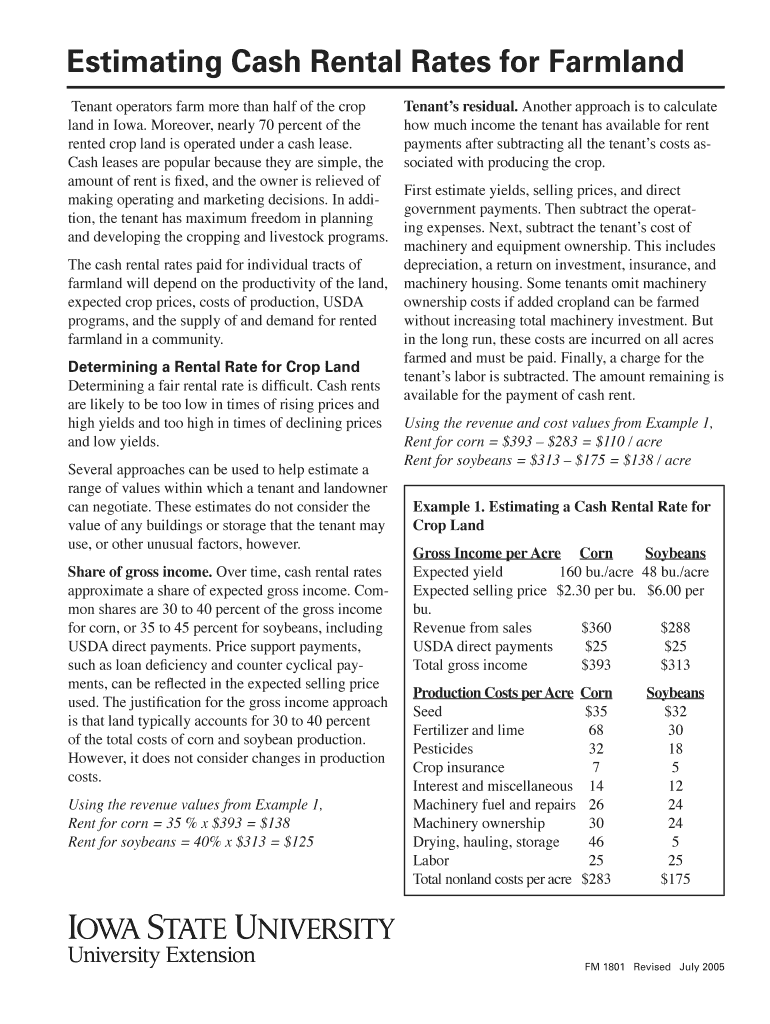 Get the free Cash Rental Rate Estimation for Farmland