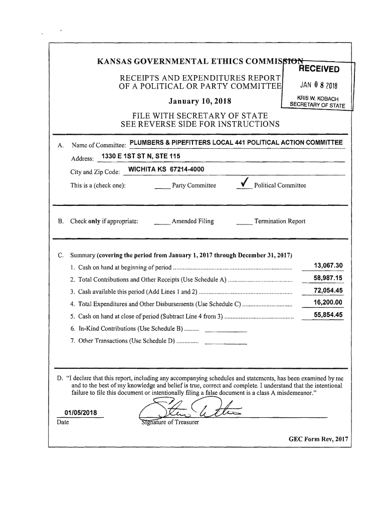 Get the free 201801 - Kansas.gov - ethics ks