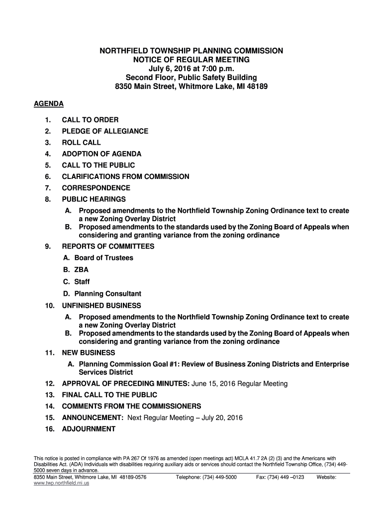 NORTHFIELD TOWNSHIP PLANNING COMMISSION