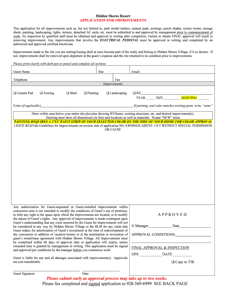 Get the free This application for all improvements such as, but not limited to, park model traile...