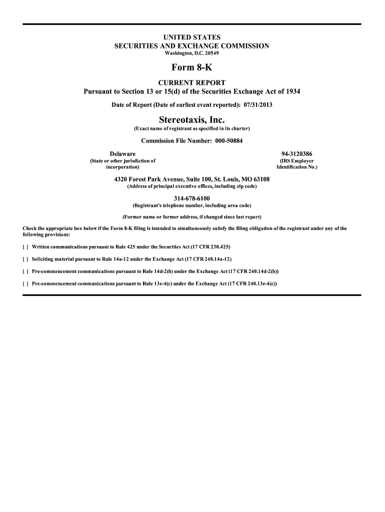 Form 8-K Stereotaxis Inc is not the form you're looking for?Search for another form here.