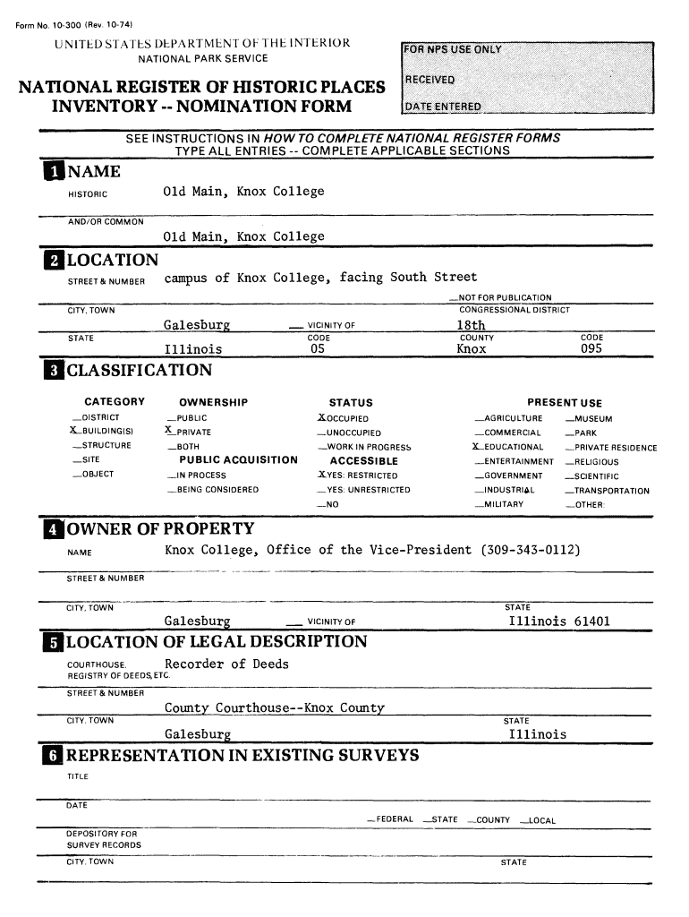 Form No. 10300 (Rev. 1074)UNITED States DEPARTMENT OF THE INTERIOR NATIONAL PARK SERVICENATIONAL REGISTER OF HISTORIC PLACES INVENTORY NOMINATION FORM SEE INSTRUCTIONS IN HOW TO COMPLETE NATIONAL