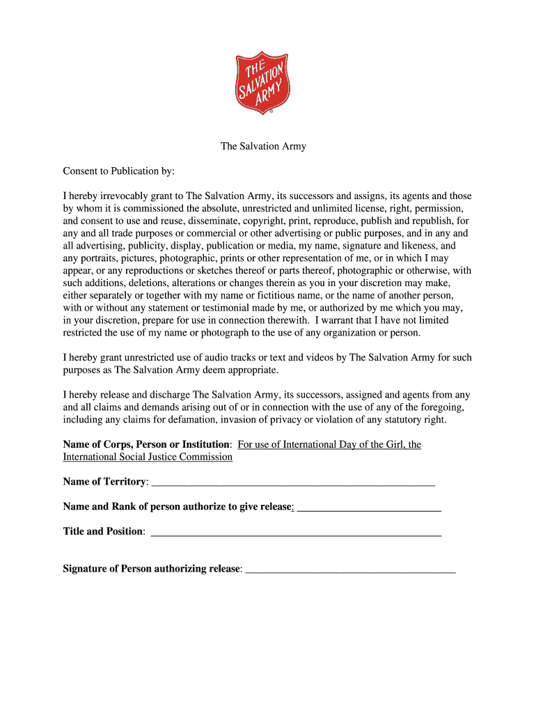 Get the free Permission/Waiver Form for The Salvation Army Residential Camps