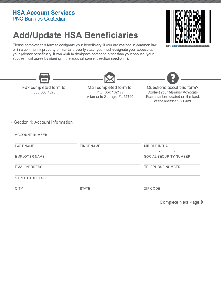 PNC Bank as Custodian/Update HSA Beneficiaries