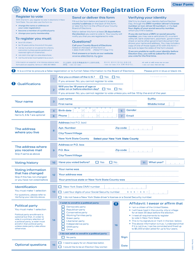 New York State Voter Registration Form Register to vote With this form, you register to vote in elections in New York State. You can also use this form to: change the name or address on your voter