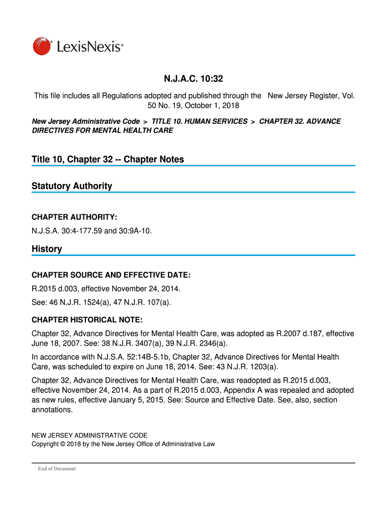 Get the free N.J.A.C. 10:32 Title 10, Chapter 32 -- Chapter Notes Statutory ...