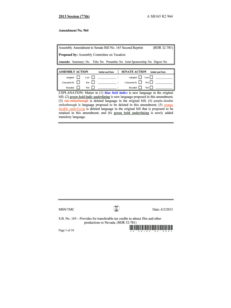 2013 Session (77th)A SB165 R2 964Amendment No. 964Assembly Amendment to Senate Bill No. 165 Second Reprint(BDR 32781)Proposed by: Assembly Committee on Taxation