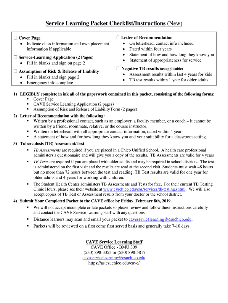 Service Learning Packet Checklist/Instructions (New)