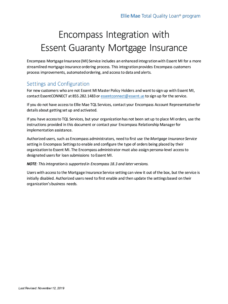 Encompass Mortgage Insurance (MI) Service includes an enhanced integration with Assent MI for a more