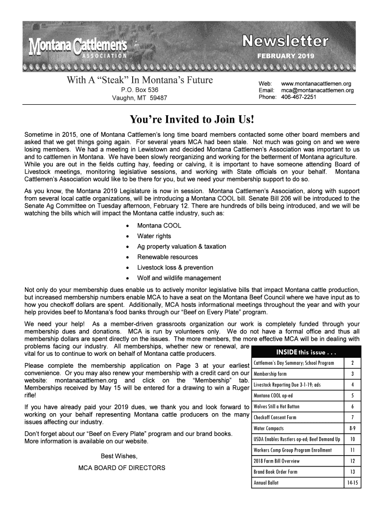 FEBRUARY 2019With A Steak In Montana's Future Web: