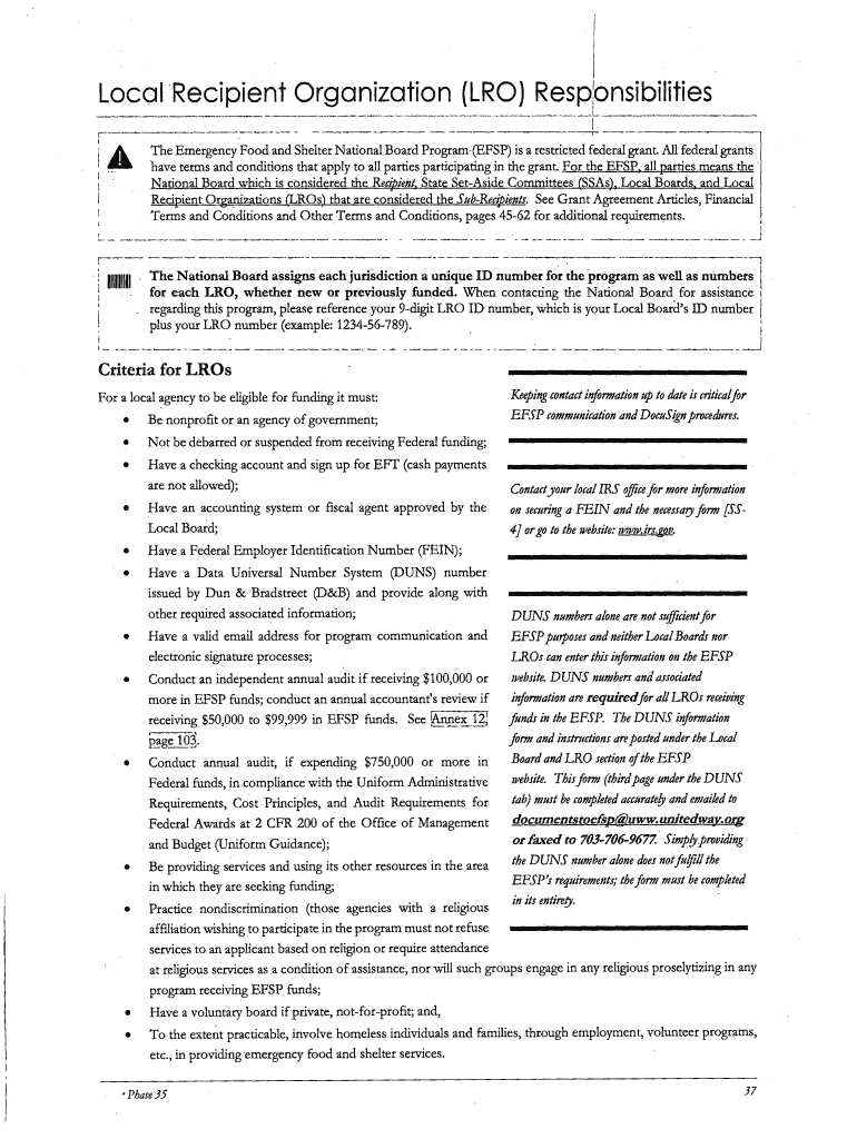 Local Recipient Organization (PRO) Resp:possibilities '!. C1IA '. , 111111111 The Emergency Food and Shelter National Board Program(ESP) is a restricted federal grant. All federal grants have terms