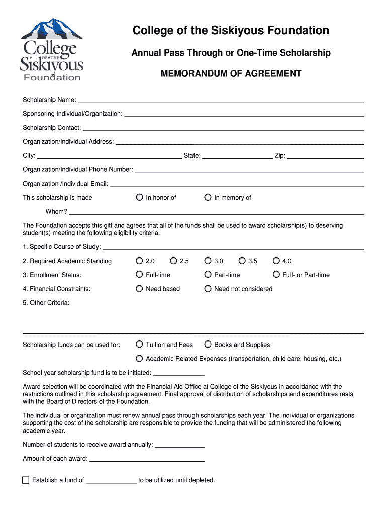Annual Pass Through or Onetime Scholarship
